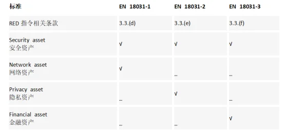 為了確保測試要求能夠在三個(gè)并列標準(EN 18031-1/2/3)之間保持一致,新標準引入了“資產(chǎn)”這一概念作為主要測試對象,并對“資產(chǎn)”進(jìn)行分類(lèi),各類(lèi)資產(chǎn)對應著(zhù)不同的標準測試要求。